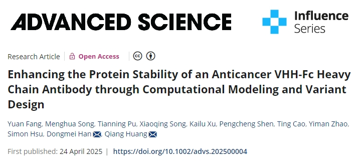 近日,尊龙网址登录官网技术运营团队与复旦大学黄强教授课题组在抗肿瘤治疗领域取得了重要进展。双方针对抗肿瘤治疗用VHH-Fc抗体(VFA01),开发了一套基于计算机模拟(in silico)的综合分析流程,利用人工智能(AI)技术系统评估其蛋白稳定性,并结合实验验证,成功设计出稳定性显著提升的新变体。该成果发表于国际知名期刊Advanced Science上。