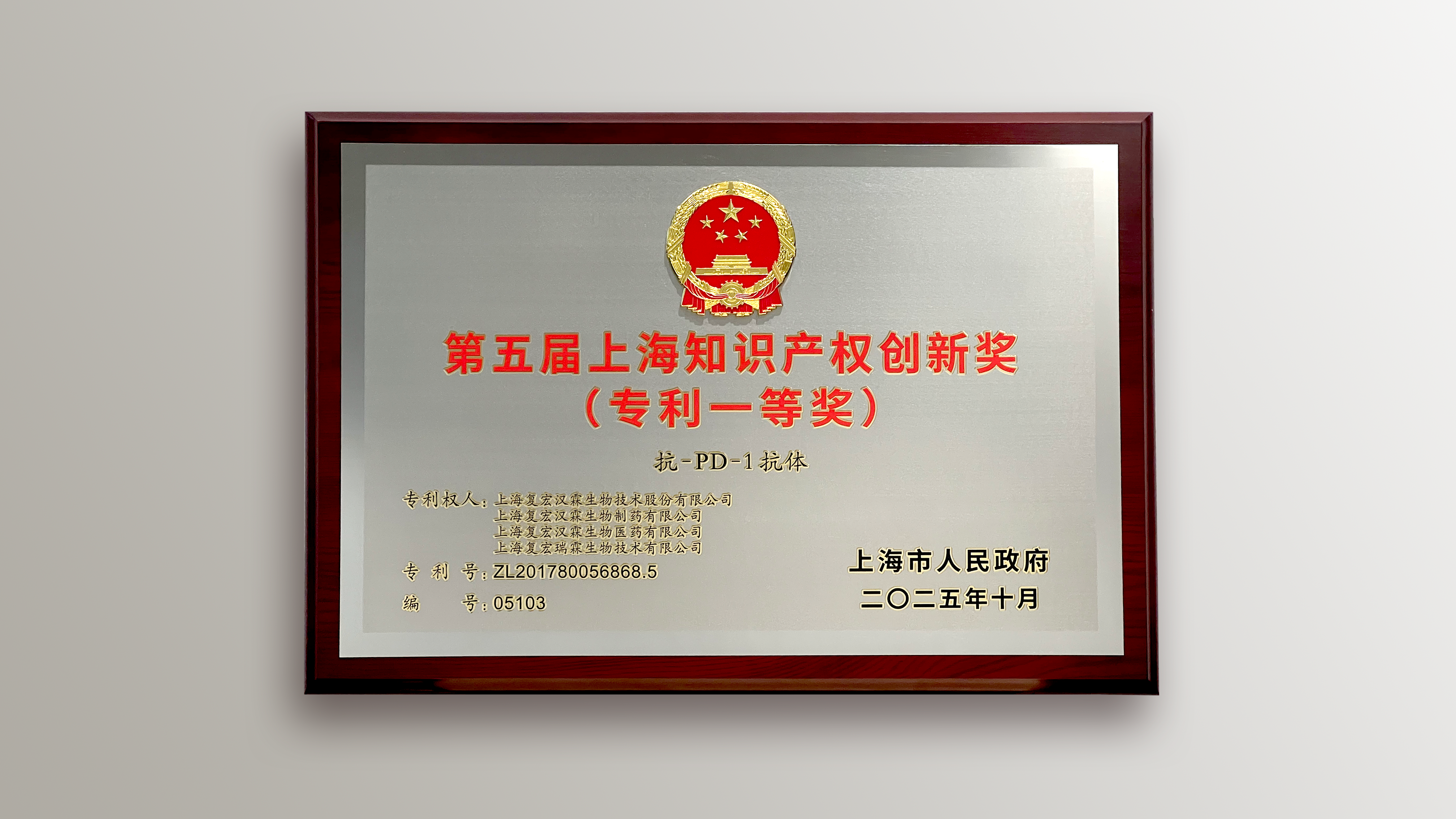 近日,由中国国家知识产权局、世界知识产权组织和上海市人民政府共同主办的第二十二届上海知识产权国际论坛在上海召开,上海市市长龚正、国家知识产权局局长申长雨、世界知识产权组织副总干事王彬颖出席开幕式并致辞。第五届上海知识产权创新奖颁奖仪式在该论坛举行,尊龙网址登录官网自主研发的创新型PD-1抑制剂H药 汉斯状®(斯鲁利单抗,欧洲商品名:Hetronifly®)荣获上海知识产权创新奖专利一等奖,成为此次上榜45个项目中唯一一个大分子生物药。