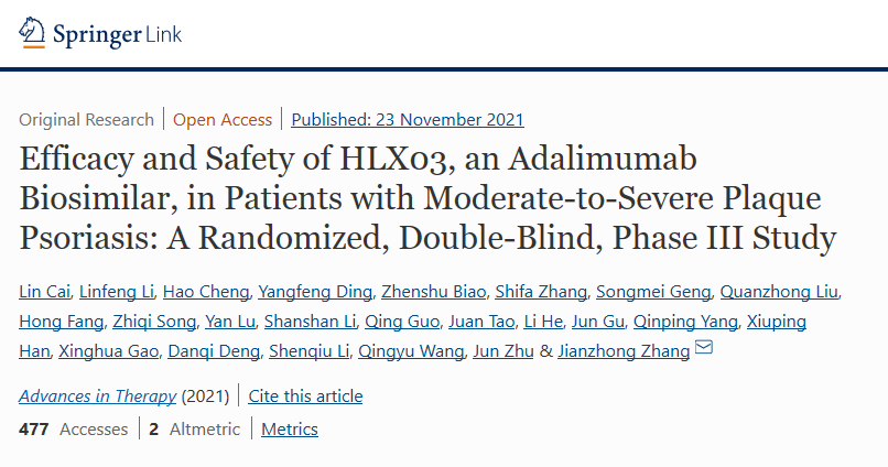近日,尊龙网址登录官网(2696.HK)宣布,公司自主开发的阿达木单抗汉达远®在中国银屑病患者中开展的III期临床试验研究(NCT03316781)结果于国际知名期刊Advances in Therapy发表。研究结果显示,汉达远在疗效、安全性和免疫原性上与原研阿达木单抗高度相似。此次汉达远®III期研究结果的发表,表明了国际同行评审对于对该临床研究质量与数据的认可。
