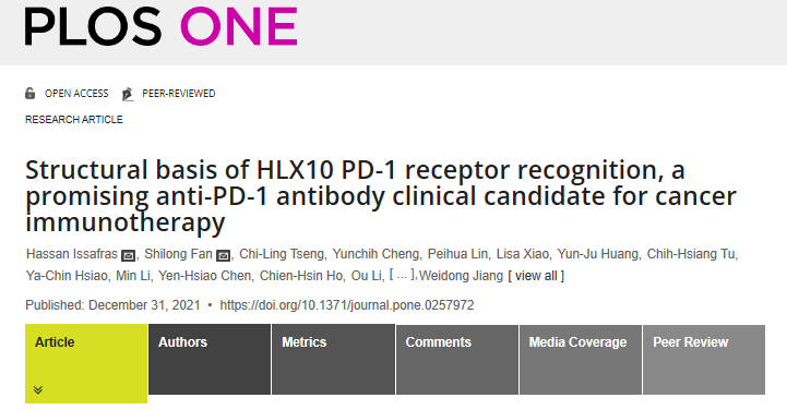 Lin P, Xiao L, et al. (2021) Structural basis of HLX10 PD-1 receptor