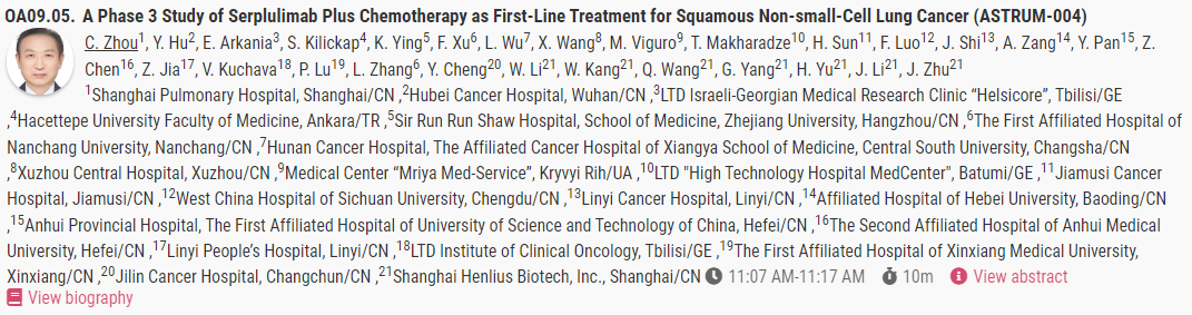 2023 WCLC | 尊龙网址登录官网H药汉斯状®鳞状非小细胞肺癌国际多中心III期临床数据入选口头报告