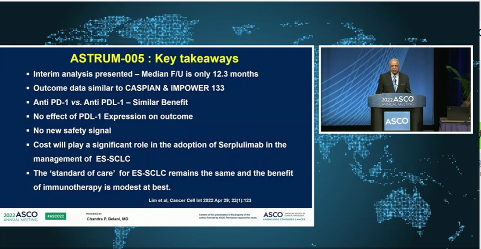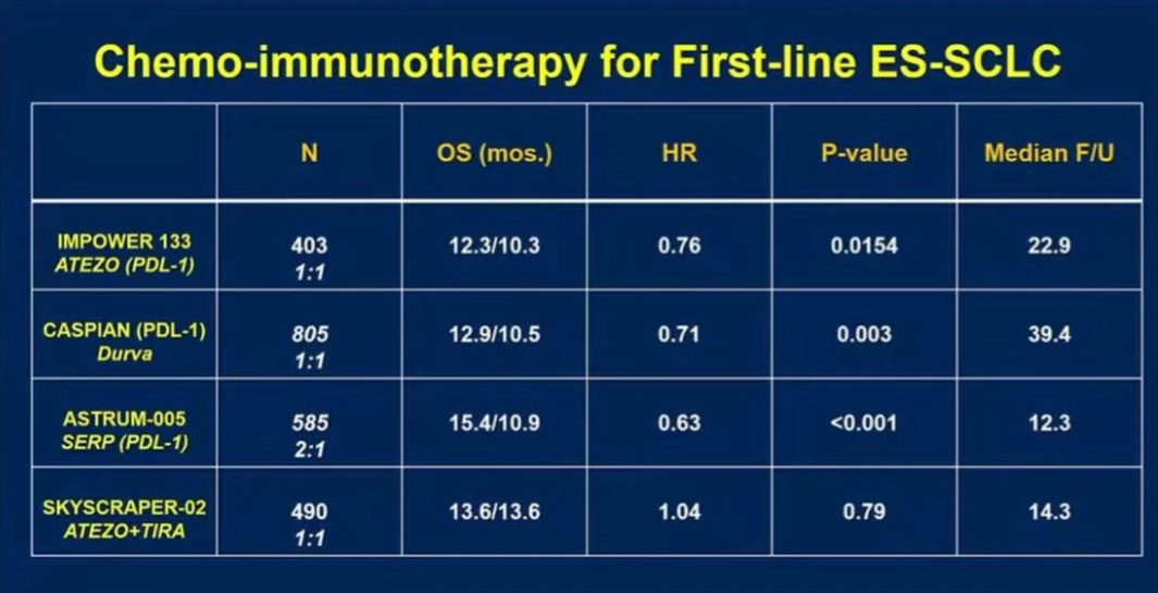 來自賓夕法尼亞州赫爾希癌症研究所的Chandra P. Belani博士點評道(圖5),從ASTRUM-005研究提交的中期報告來看,中位隨訪時間為12.3個月,研究結果與CASPIAN和IMPOWER133研究類似(圖6),都取得了非常好的成果,患者都有顯著獲益,PD-L1表達與患者預後沒有直接相關性,同時安全性良好,該研究無新的安全信號產生。